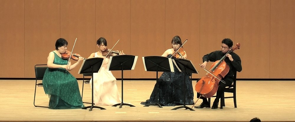 ![]() photo-6:プラムス・カルテット(左から)Vn.1 渡邊田鶴野、 Vn.2 宮澤さやか、 Vla.山寺明子、 Vc.岡田裕人 | |