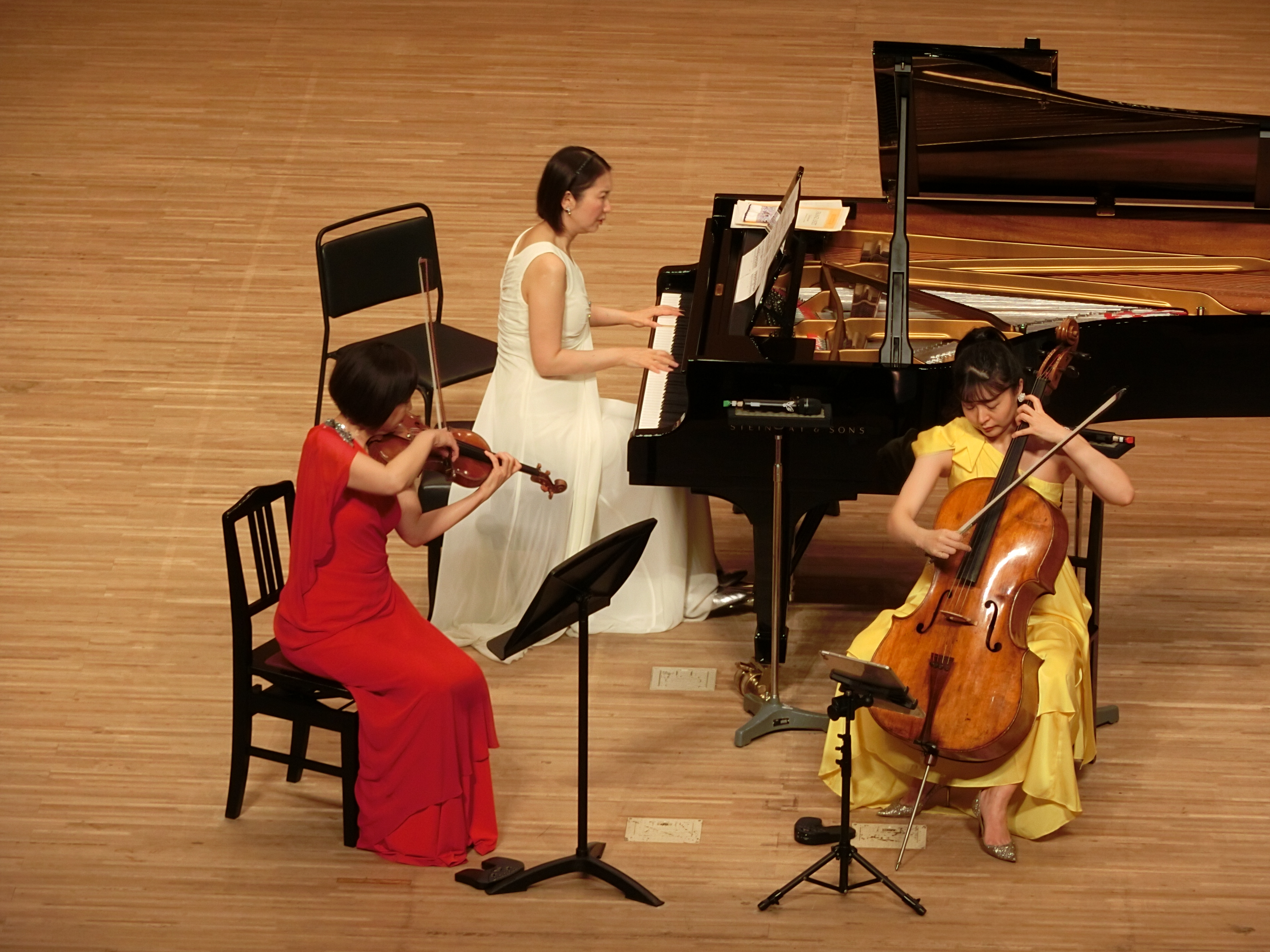 ![]() photo-1 椿三重奏団:左から礒 絵里子(ヴァイオリン)、高橋 多佳子(ピアノ)、新倉 瞳(チェロ) | |