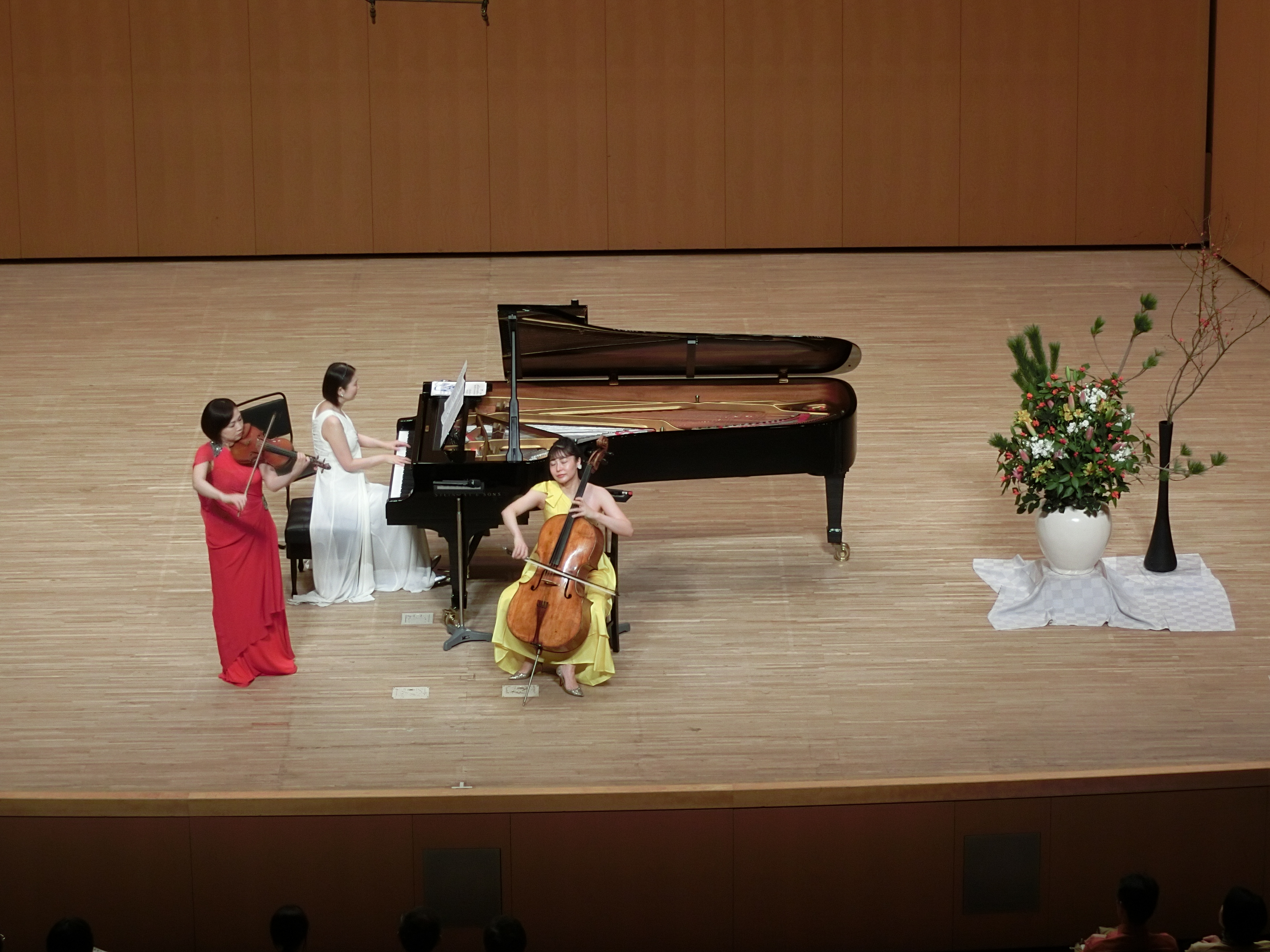 ![]() photo-1 椿三重奏団:左から礒 絵里子(ヴァイオリン)、高橋 多佳子(ピアノ)、新倉 瞳(チェロ) | |
